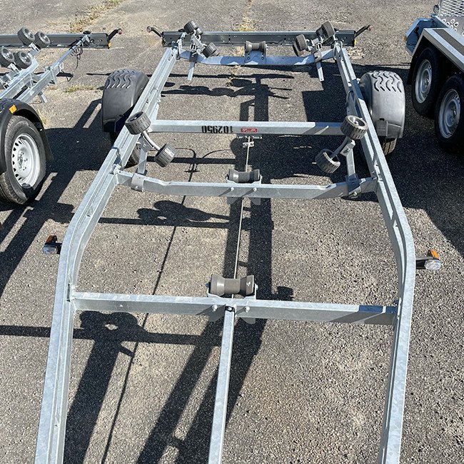 Berceau arrière inclinable à super rouleaux et doubles rouleaux latéraux réglables pour s’adapter facilement à votre bateau. Châssis galvanisé à chaud pour la durabilité et la longue durée de vie de votre remorque. Les câbles électriques sont entièrement dissimulés et protégés dans le châssis de la remorque. Roulements de roue étanches pour une durée de vie prolongée.