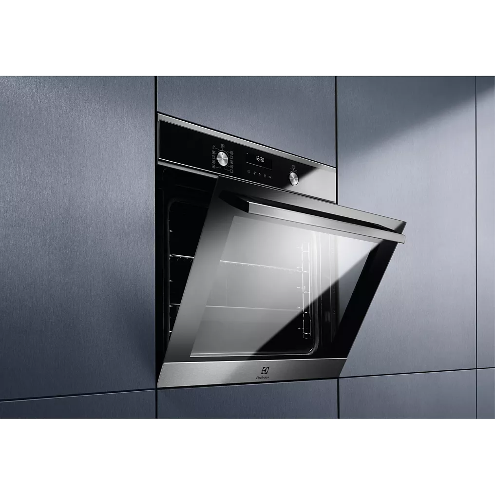 L’ergonomie du Four encastrable ELECTROLUX EOF6P46VX0 SurroundCook facilite son utilisation. Les commandes sont logiques. L’écran affiche temps, température et mode sélectionné. Les réglages s’ajustent en quelques gestes.