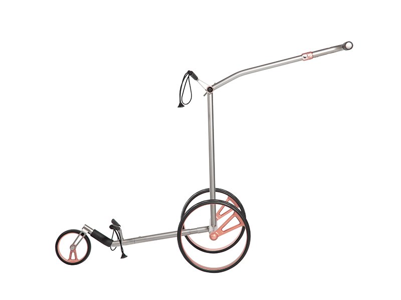 Doté de jantes en carbone à rayon unique et de finitions élégantes or rose, ce chariot électrique en titane attire tous les regards sur le fairway. Grâce à son design raffiné, il apporte une touche de luxe tout en garantissant une manœuvrabilité sans effort.