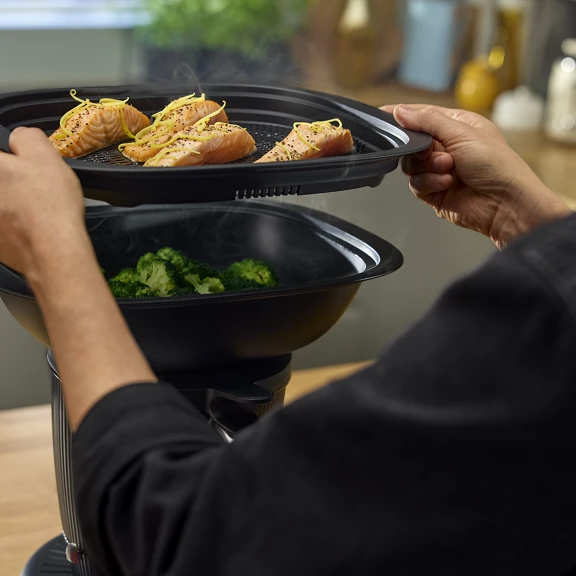 Cuisson vapeur + cuisson riz / légumes en simultané grâce au Varoma + bol principal.