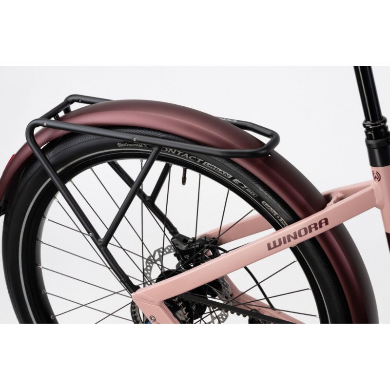 Le Winora Iride Pure R5 F MID est livré avec un éclairage LED intégré, alimenté directement par la batterie principale. L’éclairage avant puissant assure une excellente visibilité nocturne, tandis que le feu arrière intégré au porte-bagages garantit une sécurité maximale.