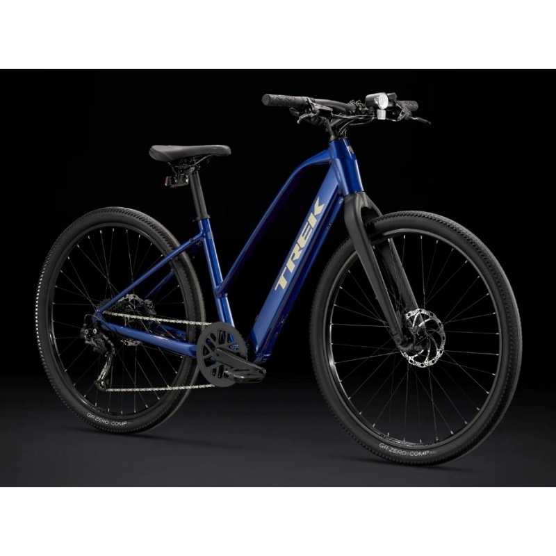 Le confort est un critère essentiel pour un VTC électrique, et Trek l’a parfaitement compris. Le cadre en aluminium Alpha Gold garantit un excellent compromis entre rigidité et souplesse. La géométrie du vélo favorise une position légèrement redressée, idéale pour la visibilité en ville et la détente sur les longues sorties.