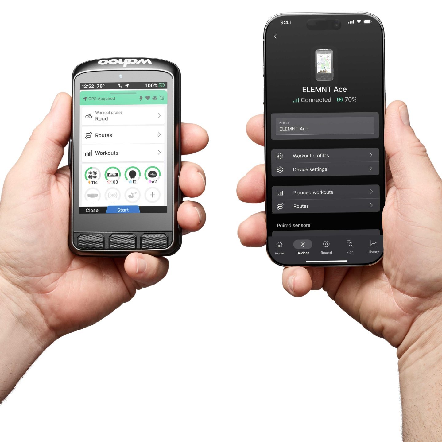 - Contrôlez votre ACE avec l’application Wahoo : ELEMNT ACE se synchronise facilement avec l’application Wahoo, qui vous sert de point central pour tout ce dont vous avez besoin pour rouler. Installez, configurez et gérez toute votre expérience cycliste en déplacement, sans jamais avoir à toucher l’appareil.